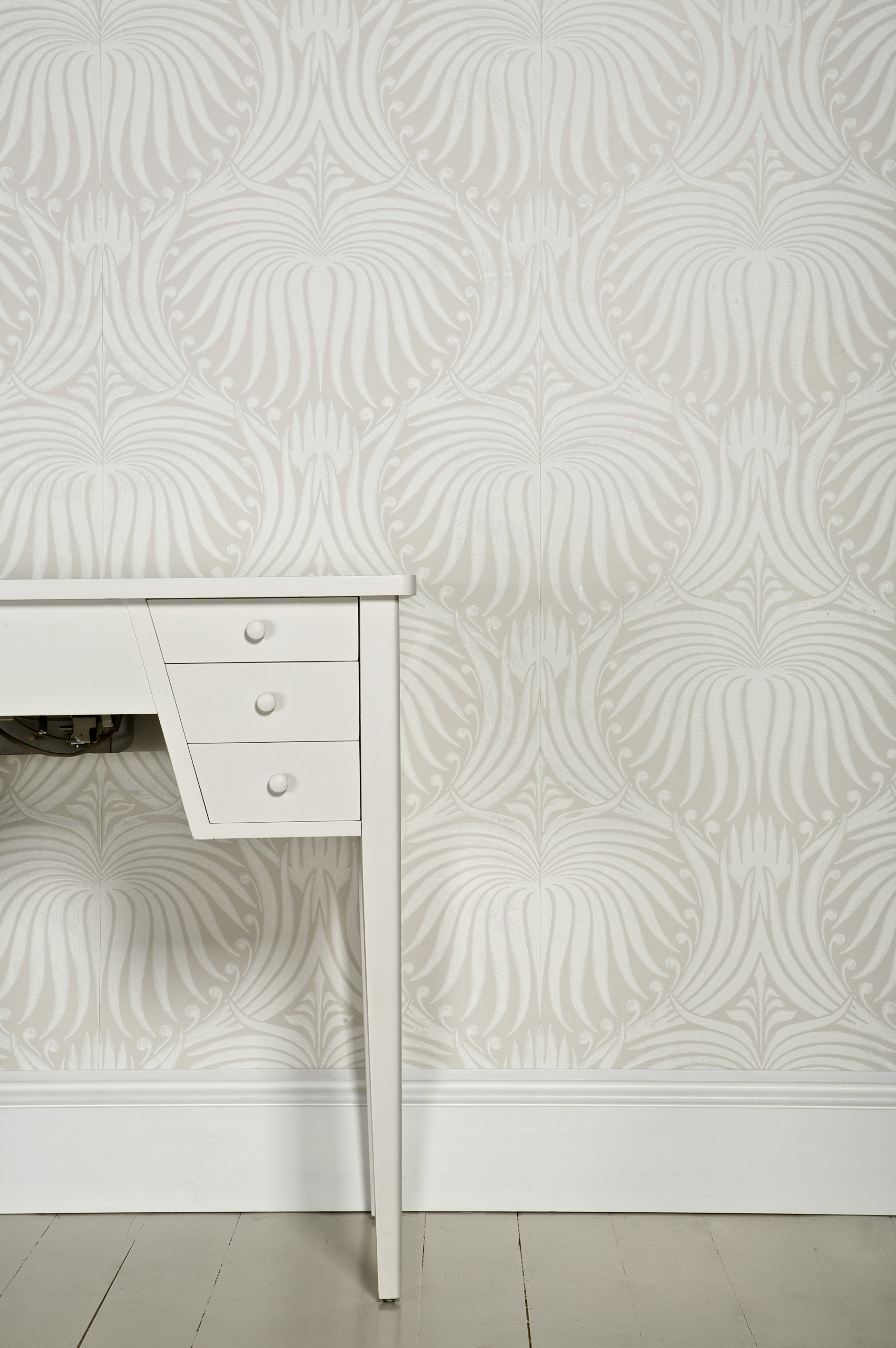 The Art Noveau-inspired Lotus brings a touch of 19th-century elegance to homes in both a contemporary and traditional way. Each sweeping bloom is printed using Farrow & Ball paint, which creates tactility and a sense of movement.